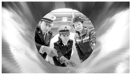 图为重庆海关关员到某公司生产车间开展实地核查。
