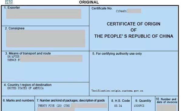 自助打印原产地证书