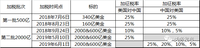 自2019年6月1日0时起,对原产于美国的部分进口商品提高加征关税税率。