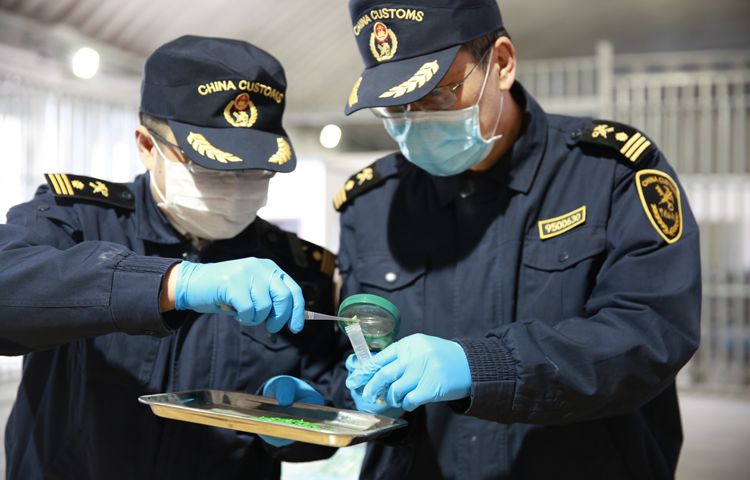 图为:兰州海关所属兰州中川机场海关关员监管入境种子 杨晓琴/摄