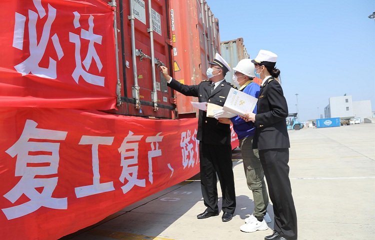 为保障出境国际邮件快速通关,大窑湾海关与港务部门协作开辟临时邮路接驳场所,第一时间完成海关封志和单证验核工作,确保国际邮件顺利装船出境。