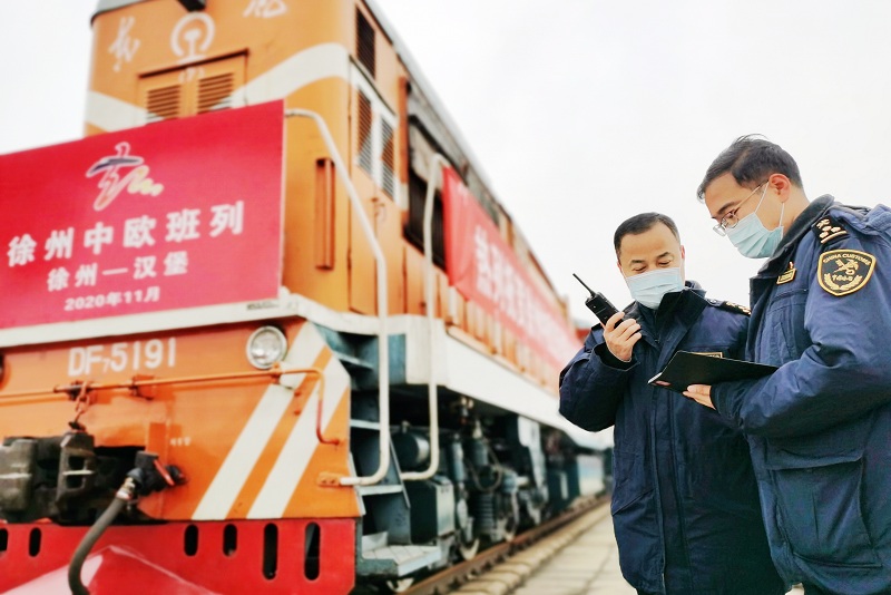 徐州海关持续优化营商环境,设立中欧班列快速通关“绿色通道”,采用预约报关、预约查验等措施,落实“不见面审批”“收发货人不到场查验”、全面实施查验单兵设备应用、转关无纸化等便利化举措,对开行班列需求予以全面保障,做到随到随查、快速验放、高效出证、通关顺畅。同时,建立班列运营方、货物堆场、主要企业联络员机制,统筹企业物流、场地吊装、海关查检三方作业,同步开展班列信息核对、货物转关或装车作业,压缩通关时间30%以上。2月8日,从俄罗斯乌兰乌德发运徐州的木材进口班列运抵徐州,完成今年以来江苏省内中欧班列首班回程。2月14日,满载徐工机械的“徐工专列”鸣笛发出,在新冠肺炎疫情期间率先恢复了江苏省内中欧班列正常运营。