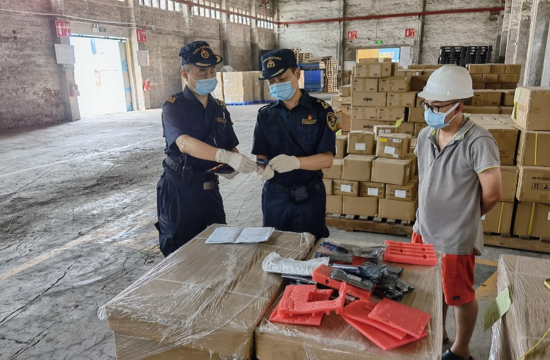 图为:关员对出口监管仓库货物进行监管 吕飞飞/摄