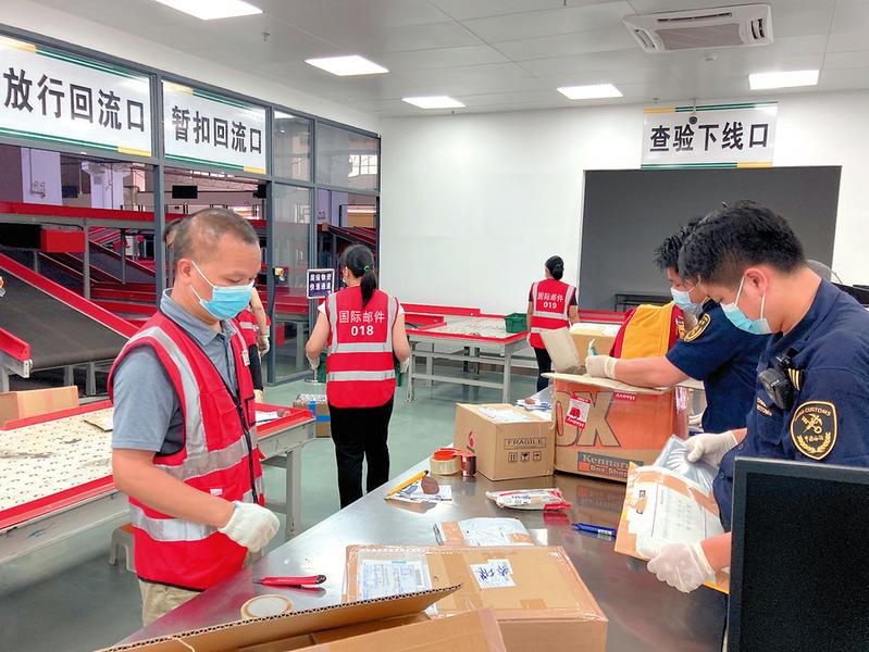 图为:南宁邮局海关查验现场。赖有光 摄 2019年8月,国务院批复同意设立中国(广西)自由贸易试验区,实施范围119 99平方公里,涵盖南宁 ...