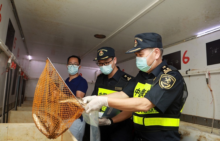 图为:拱北海关关员对供港水产品进行监装 俞波 摄 图为:拱北海关关员对高栏港码头的进出口货物进行监管 俞波 摄 7月30日凌晨3 ...