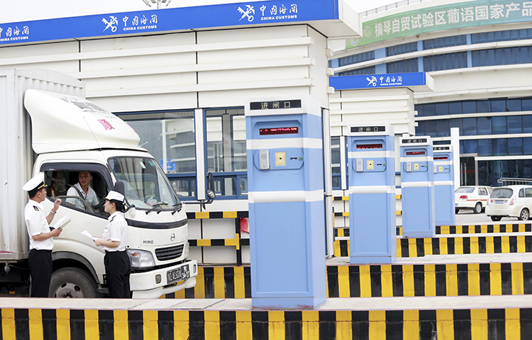 图为:拱北海关关员验放货物 俞波 摄 据海关总署发布数据,澳门回归20年来(2000年1月-2019年11月),内地对澳门地区进出口累计达3515 ...